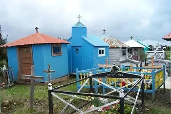 Muchos de los cementerios rurales de Chiloé destacan porque parecen verdaderas "ciudades de los muertos". Sus tumbas, hechas de madera, corresponden a viviendas chitotas a escala. Pese a las inclemencias del frío y la lluvia, propias de la zona, las visitas a los muertos constituyen una necesidad y un rito de vida.