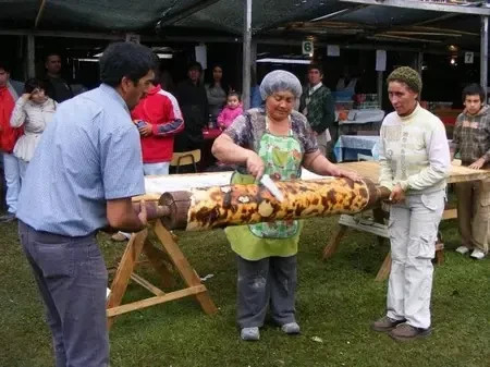 Esta contundente masa de papa rallada, asada a las brasas sobre un uslero gigante y rellena con chicharrón de cerdo, es el pan ancestral de los chilotes.