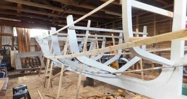 A la entrada de Dalcahue se ubica este astillero. Lugar en el cual trabajan los carpinteros en la construcción de lanchas. Verá las grandes quillas, cuadernas cortadas de una rama de árbol, clavos de cobre y calafateado con estopa de corteza de alerce.